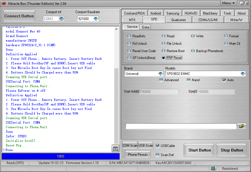 swipe connect neo 4g frp reset success by miracle thunder